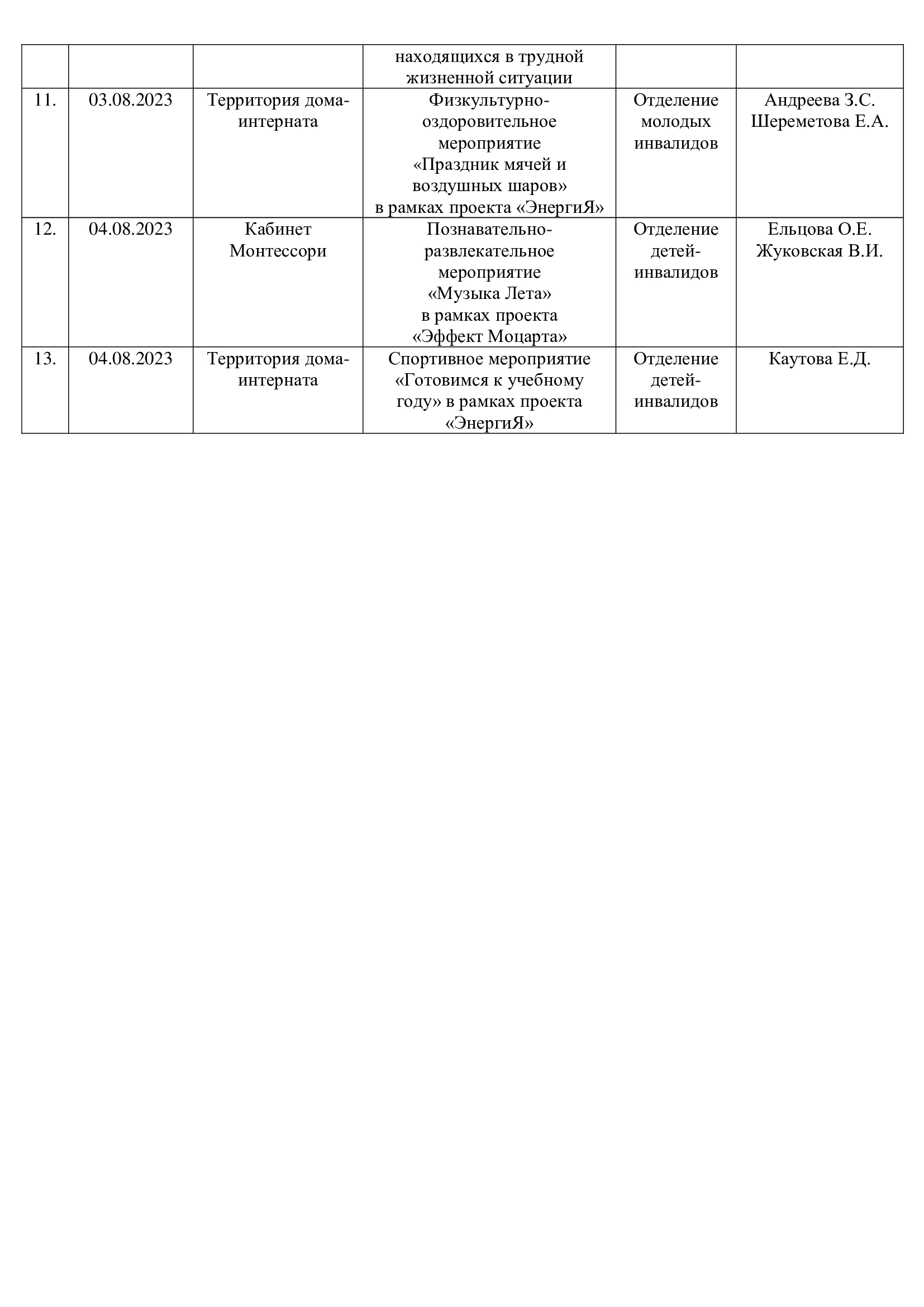 План работы ГОБУСОН МДИУОД с 31.07.2023 по 06.08.2023