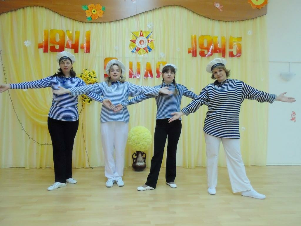 Для ребят, в исполнении воспитателей И.Б.Седовой, М.В.Ершовой, учителя-логопеда Т.А.Тимофеевой, старшей медсестры М.А.Сизовой, педагога-психолога А.Н.Толкачёвой, секретаря Е.Е. Кондратьева прозвучали песни композиторов: Александра Журбина, Вениамина Баснера, В.Соловьёва-Седова, Матвея Блантера, Анатолия Новикова и др. Просто покорили всех присутствующих в зале задорные танцы «Смуглянка» и «Яблочко» в исполнении воспитателей: И.Б.Седовой, И.А.Заборщиковой, Е.Е.Евгеньевой, В.С.Поповой, педагога-психолога И.Ю.Чистяковой и инструктора по физической культуре Э.Р.Науменко. Ведущие и организаторы праздника, посвящённого Дню Победы, Е.А.Владимирова и Л.Г.Качусова рассказали детям о героическом подвиге нашего народа в Великой Отечественной войне. С замиранием сердца смотрели ребята на праздничный салют Победы и дружно хлопали всем выступающим, подпевали «Катюшу».