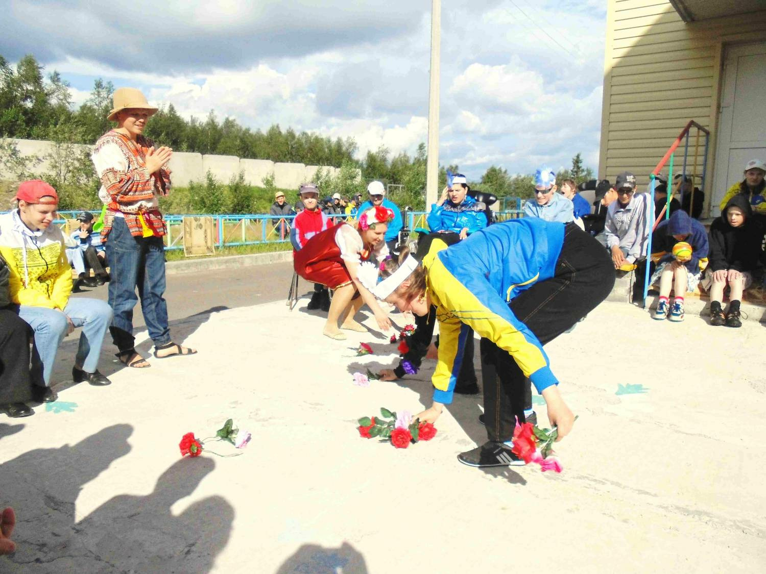 На празднике звучали стихи и рассказы о растениях. Садовник загадывал ребятам загадки, а тех, кто сумел на них ответить, Королева цветов брала к себе в помощники и одевала в костюм цветка. Вскоре игровую площадку рядом с отделением молодых инвалидов заполнили разные «цветы»: маки, одуванчики, колокольчики и ромашки.