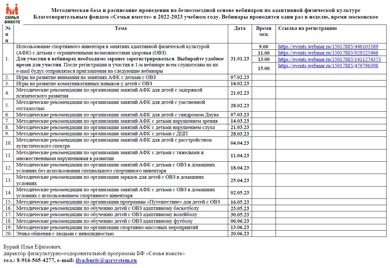 Пригашаем принять участие в вебинарах по адаптивной физической культуре