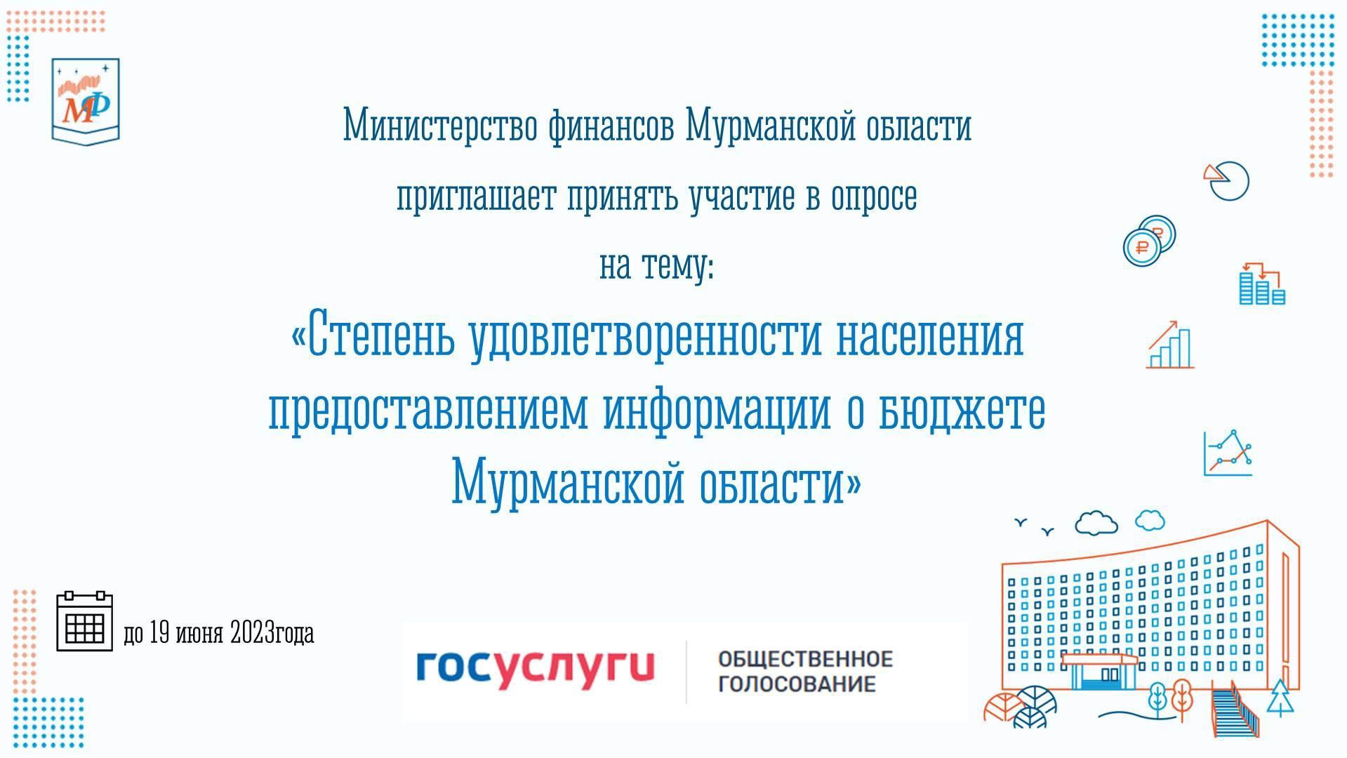 Региональный Минфин предлагает жителям Заполярья принять участие в опросе о степени удовлетворенности населения предоставлением информации о бюджете Мурманской области.