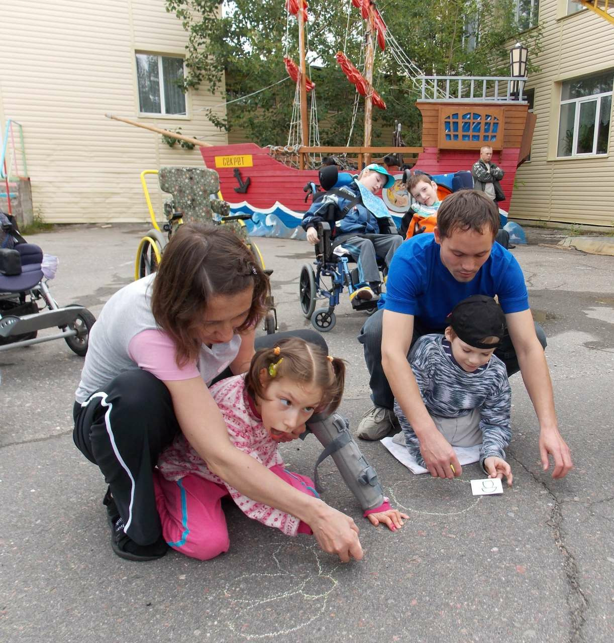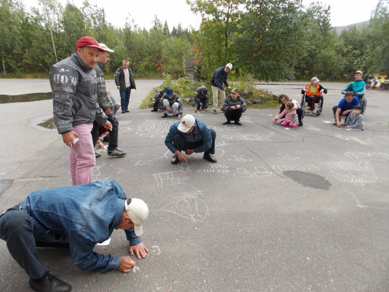 Воспитанники отделения молодых инвалидов и детского отделения по очереди доставали заранее приготовленные карточки с заданиями из «Чудесного мешочка». Как по взмаху волшебной палочки, кусочки мела в руках детей превратили асфальт в летнюю поляну с распустившимися ромашками, душистыми грибами, загадочными избушками, маленькими и большими звездочками. Ребята были и счастливы, и взволнованны одновременно, где, как не в рисунках они раскрываются навстречу солнышку, теплому ветерку. А детские песни, сопровождавшие этот праздник, сделали торжественнее это яркое событие. Мелки таяли на глазах, а ребятам не хотелось расходиться.