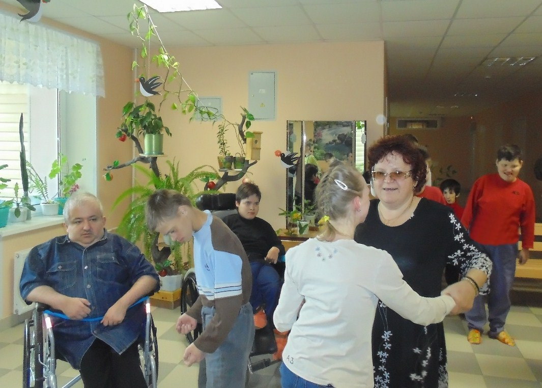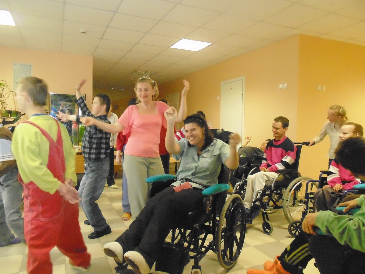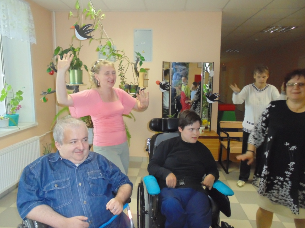 Если на улице дождь и ничего не радует - наши педагоги знают, как поднять ребятам настроение. Воспитатели Шереметова Е.А. и Туманина Н.Ю. устроили для молодых инвалидов веселую дискотеку. Под ритмичные, современные мелодии ребята танцевали и веселились. На дискотеке воспитанники надолго зарядились хорошим настроением.