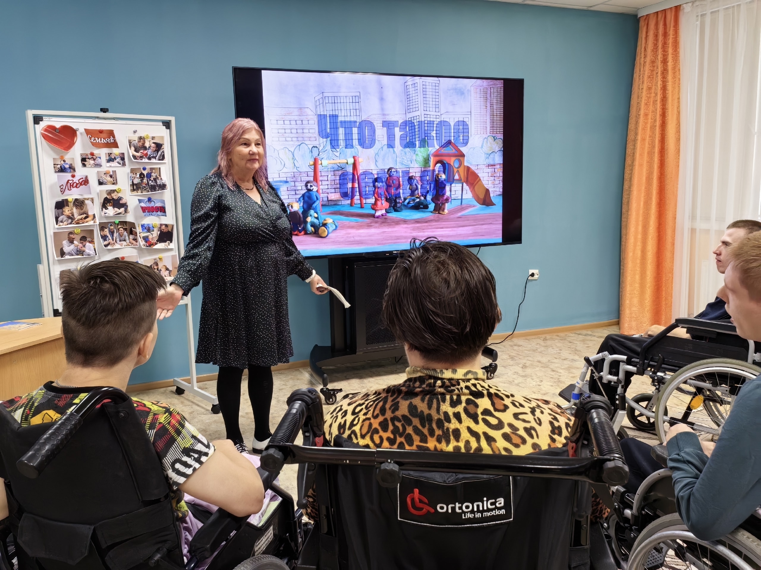 В рамках проекта мультстудии «Муравьишка» для получателей социальных услуг состоялся творческий мультчас. Встреча началась с беседы о семье — особенно важной и ценной части нашей жизни. Участники обсуждали, что такое семья , а также какое значение она имеет лично для каждого. Для большинства присутствующих интернат стал настоящим домом, а воспитанники и специалисты — близкими людьми. Зрителей ждал сюрприз — премьера небольшого мультфильма «Что такое семья», созданного специалистом по реабилитации и участниками мультстудии. Фильм передал простую, но важную истину: семья — это источник силы, мудрости и безусловной любви. Вторая часть занятия проходила в игровой форме. Были организованы интересные викторины и веселые конкурсы. А небольшая танцевальная пауза стала ярким дополнением, вызвав море эмоций и хорошее настроение. Завершился вечер сладким чаепитием, которое создало теплую и по-настоящему домашнюю атмосферу для приятного общения.
