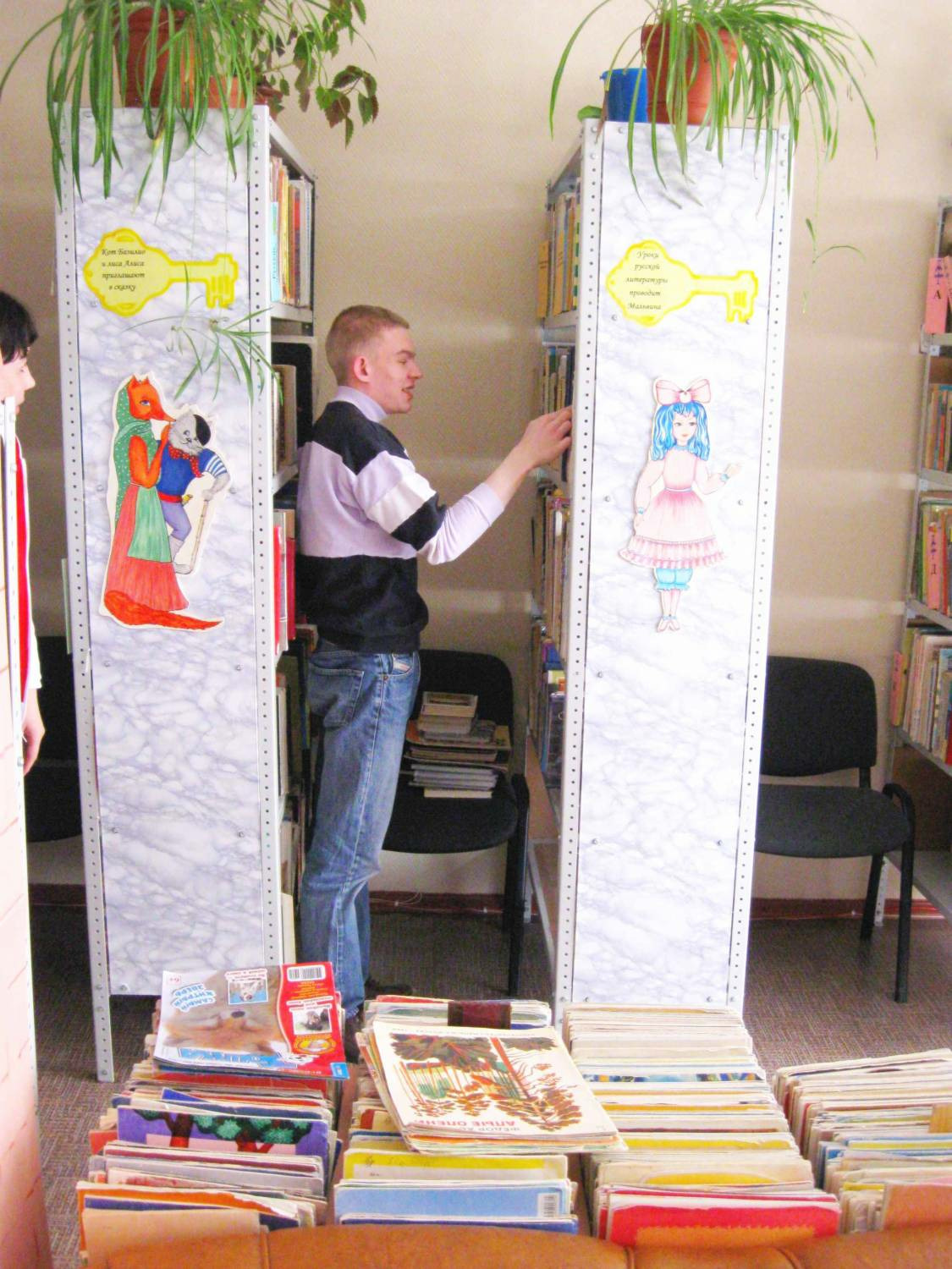 Войдя в читальный зал, молодые люди увидели множество книг. Книг было так много, что у них захватило дух: «Неужели всё это можно прочитать?». Немного осмотревшись, ребята поучаствовали в викторине «Путешествие по страницам русских сказок», предложенной библиотекарем Гулиевой Ольгой Александровной. Все с удовольствием отгадывали названия сказок, сказочных героев и их атрибуты, изображали любимых персонажей.