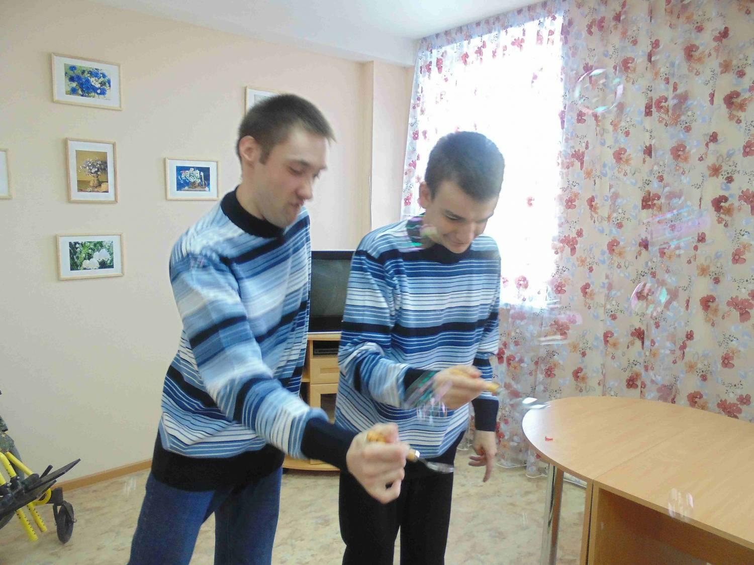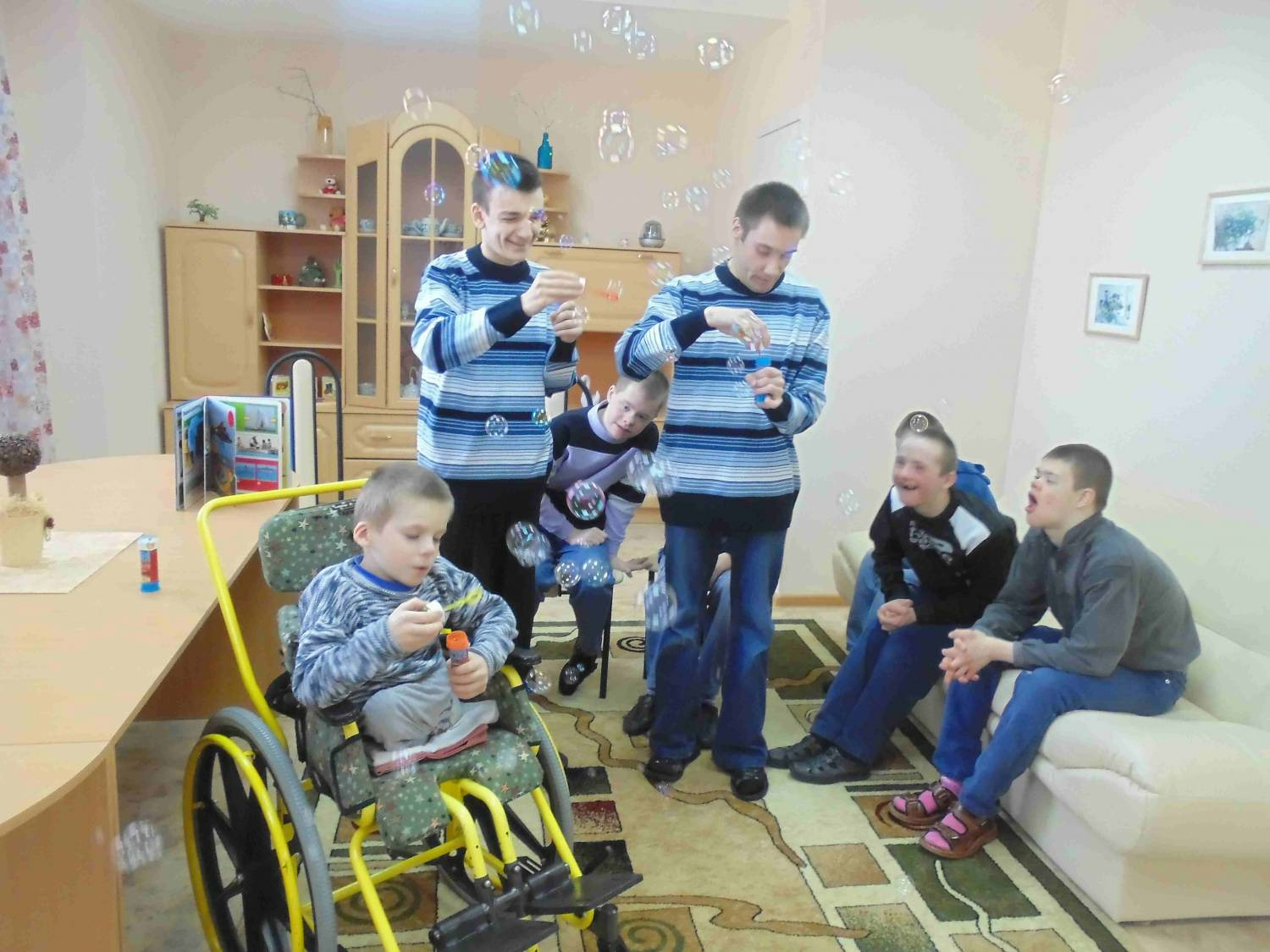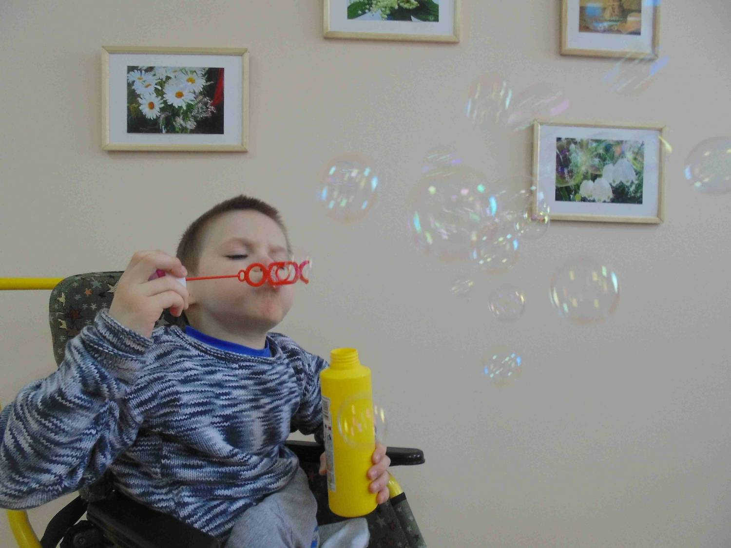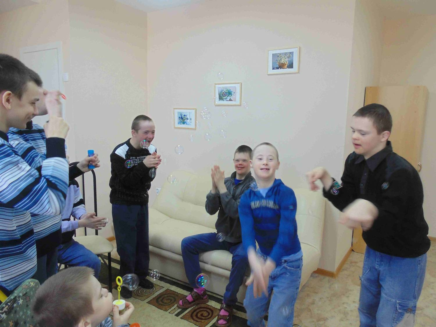 Умеете ли вы выдувать мыльные пузыри? Это не так просто, как может показаться на первый взгляд, особенно для наших детей с ограниченными возможностями здоровья. Но восторга и радости от этого процесса они получают не меньше. Именно такие чувства испытали ребята, побывавшие в социальной гостиной дома-интерната, которая, благодаря стараниям педагогов Е.Ю. Игнатенко и Э.Р. Науменко, преобразилась в планету мыльных пузырей.