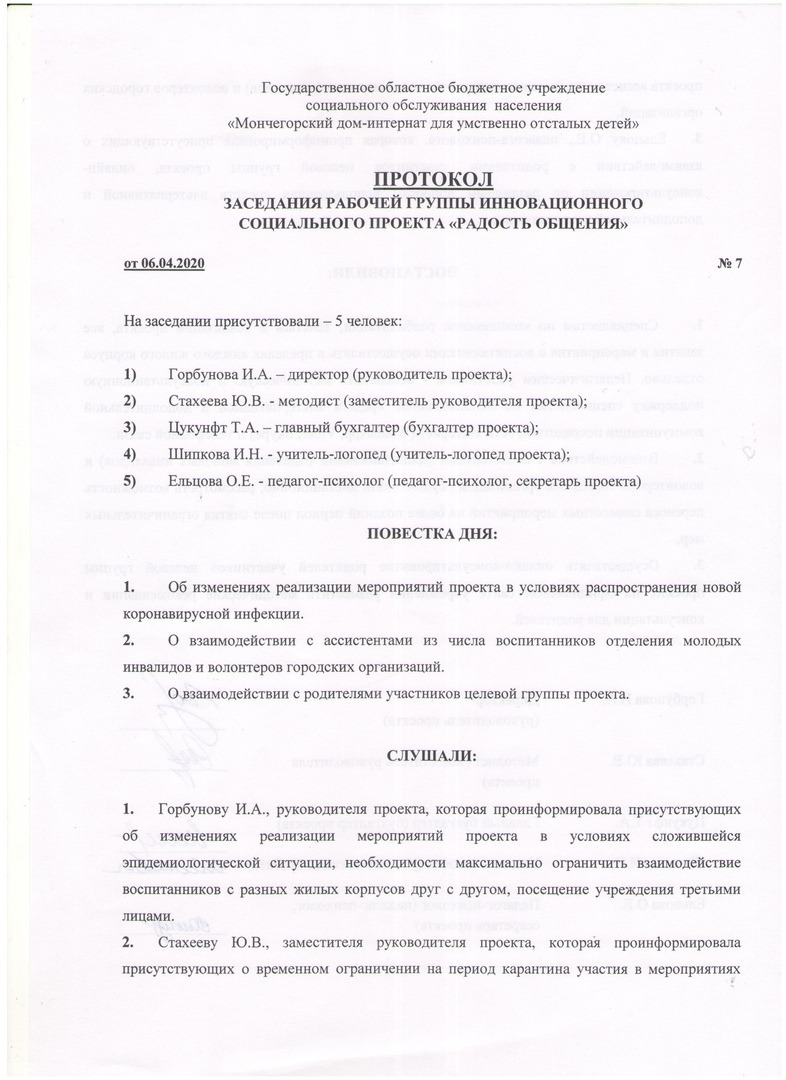 Протокол заседания рабочей группы инновационного социального проекта №7