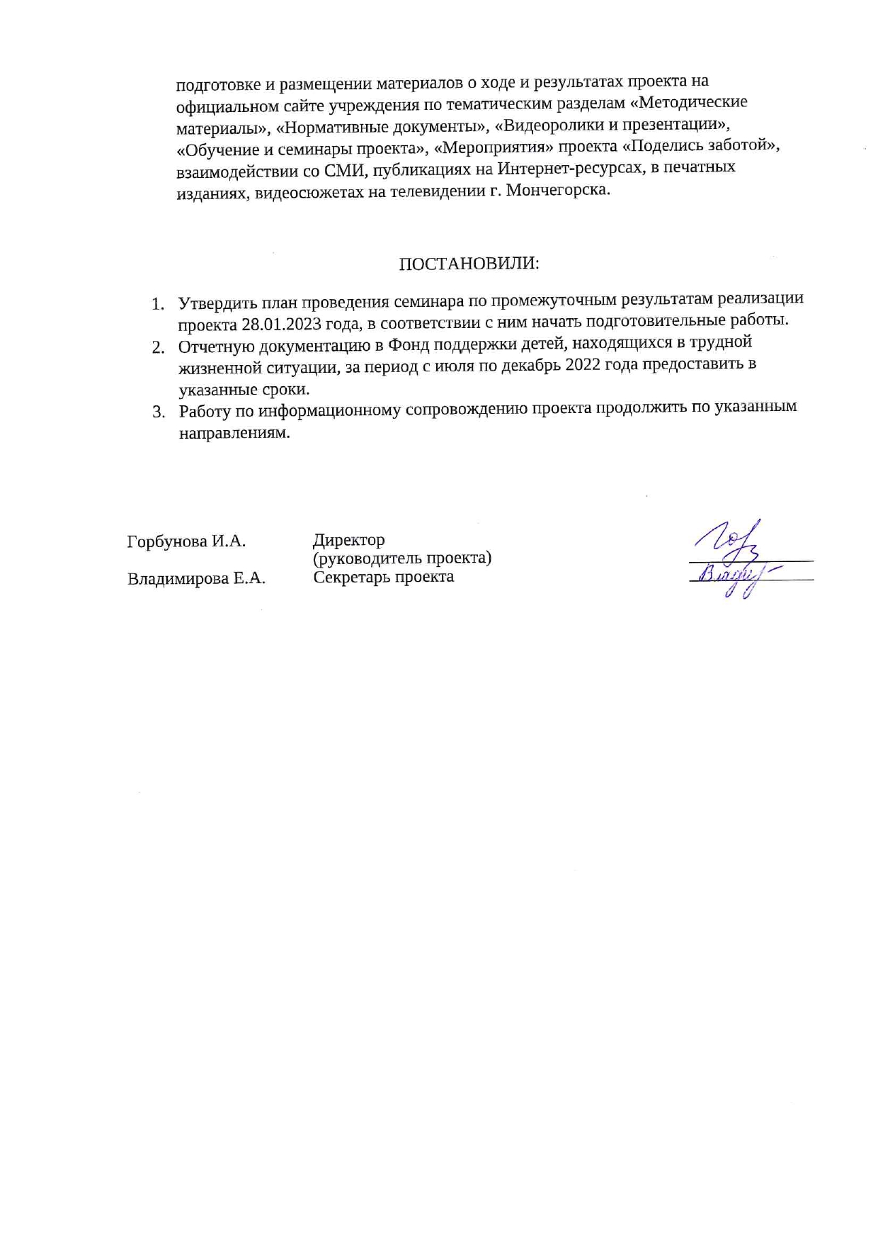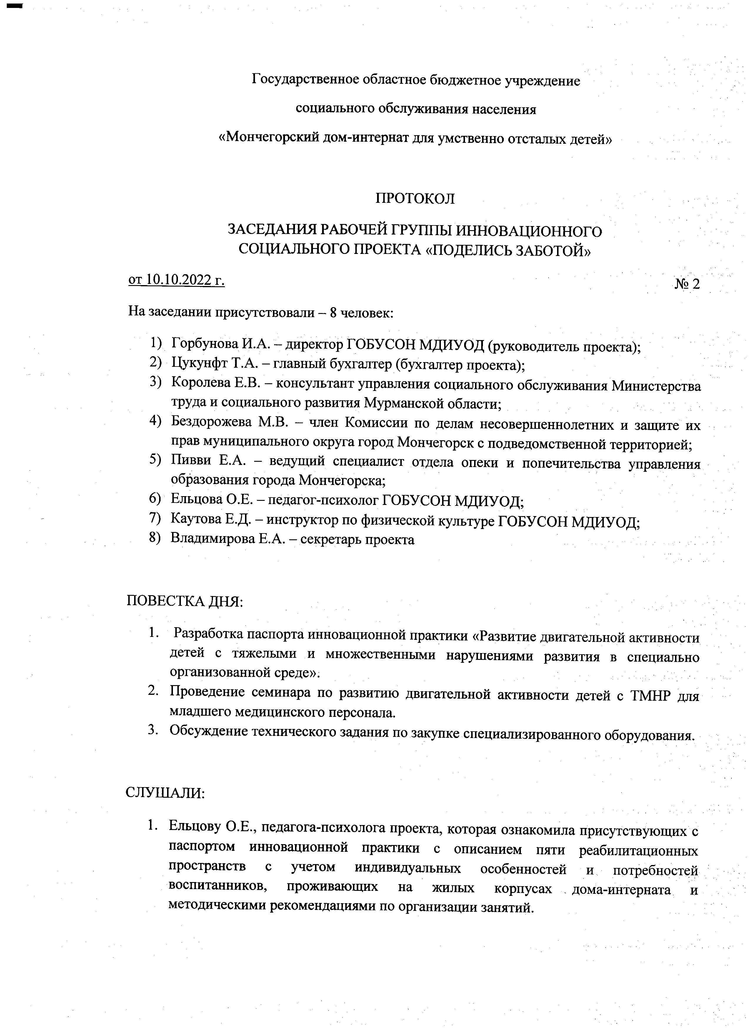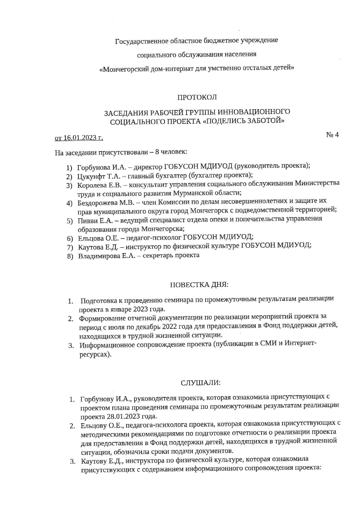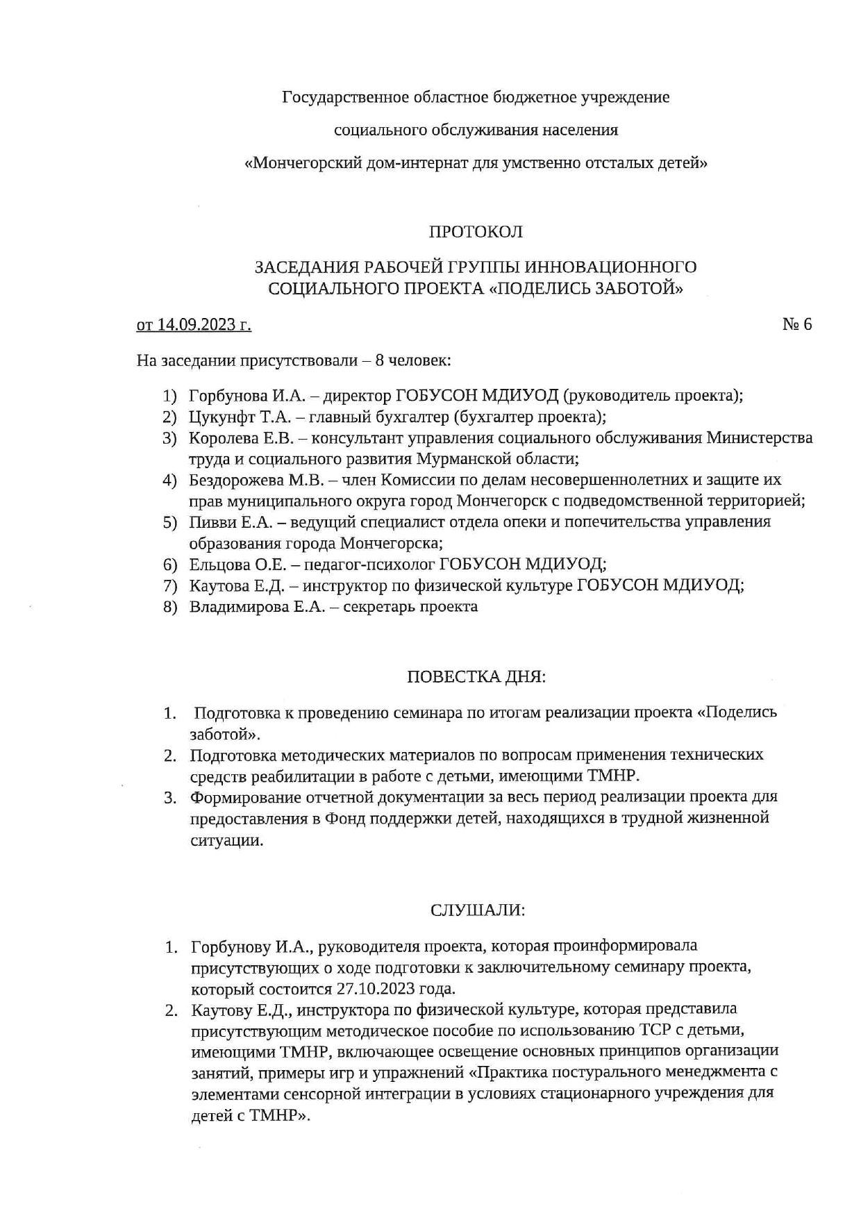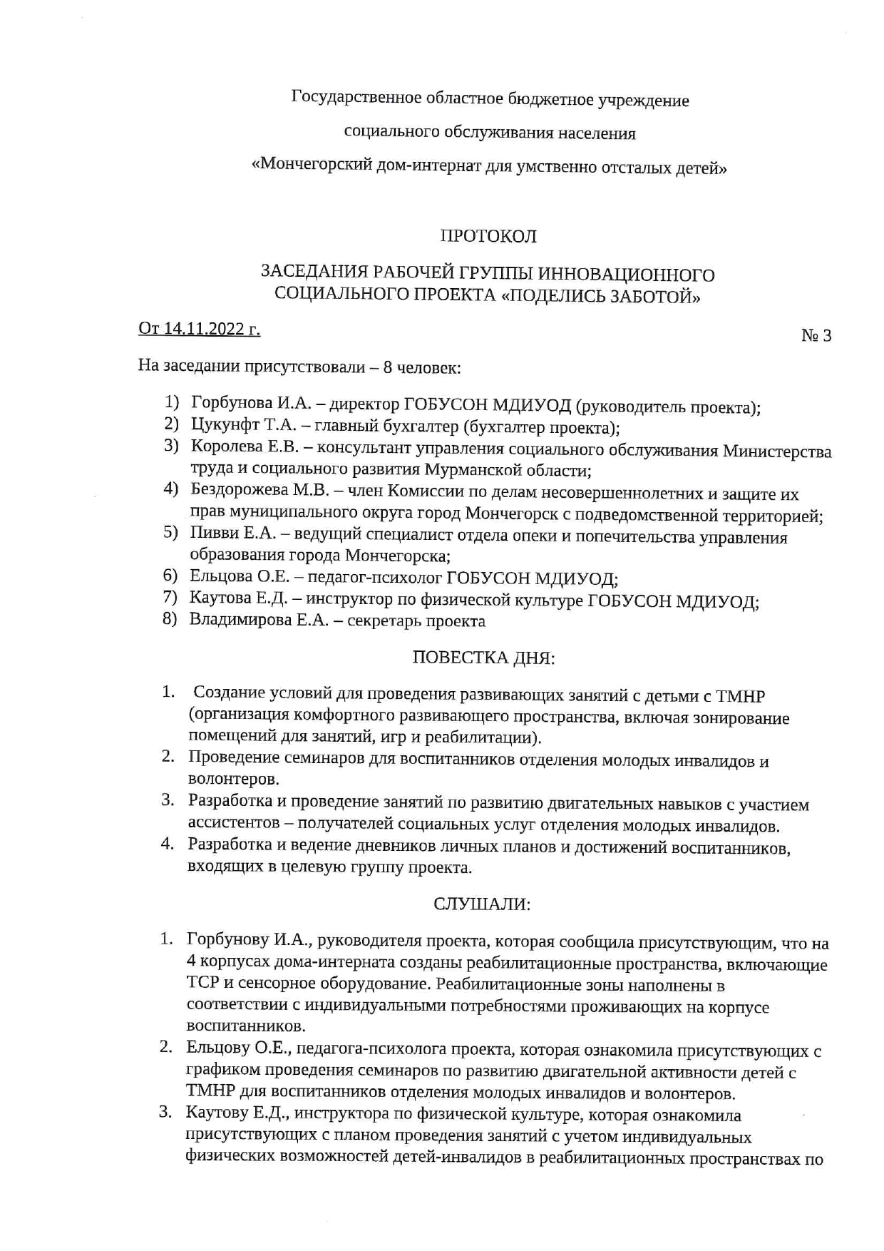 Протоколы заседаний рабочей группы проекта «Поделись заботой»